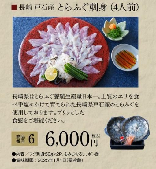 ●内容/フグ刺身50g×2P、もみじおろし、ポン酢